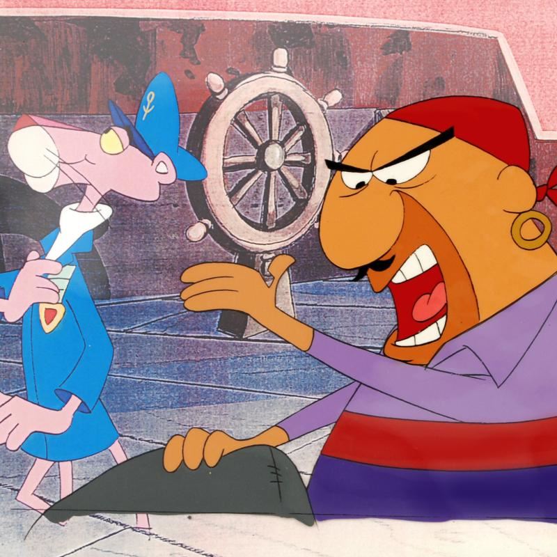 This is an original full color production cel - actually used in the animated TV series "The Pink Panther Show Production Cel" - comes with two painted production Cel, background, and two production sketches. Measures approx. 12.5" x 11" (image/ no Border).