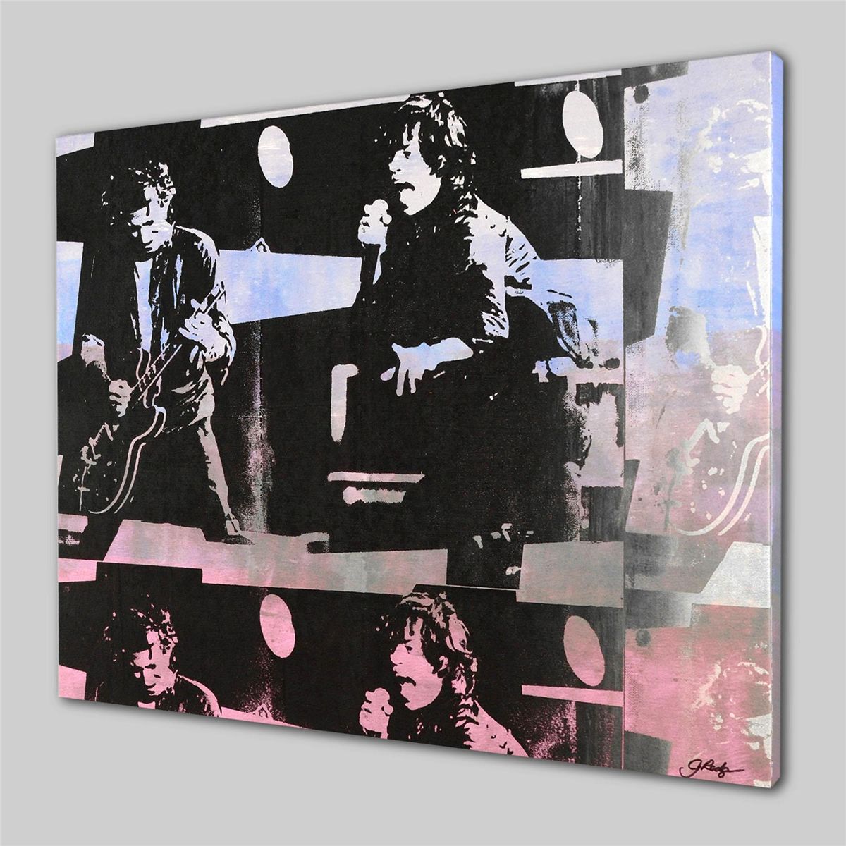 Renowned for her pop art creations, Gail Rodgers creates pieces that catch your eye and compel you to look a little closer. "The Rolling Stones" is a one-of-a-kind hand-pulled silkscreen and acrylic painting on canvas by Gail Rodgers, hand signed by the artist. Gallery wrapped and ready to hang! Measures approx. 40" x 32" (image).
