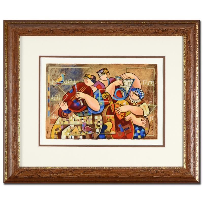 "Trio Chorus" is a a limited edition serigraph on paper by Dorit Levi, numbered and hand signed by the artist! This piece comes custom framed using acid free materials and is ready to hang. Measures approx. 20.5" x 17" (with frame), 11.5" x 7.5" (image).