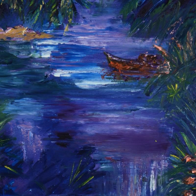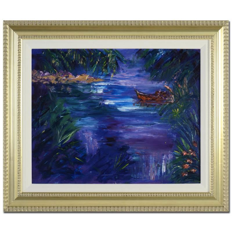 "Tropical Evening" is an original oil painting on canvas by Elliot Fallas! This piece is custom framed using acid free materials and is ready to hang. Includes Certificate of Authenticity! Measures approx. 26" x 22" (with frame); 19.5" x 15.5" (image).