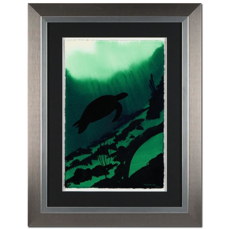 "Turtle with Reef" is an original watercolor painting on deckle-edge paper, hand signed by Wyland. This piece is custom framed using acid free materials and is ready to hang. Includes Certificate of Authenticity! Measures approx. 26.5" x 34.5" (with frame); 15" x 22.5" (image).