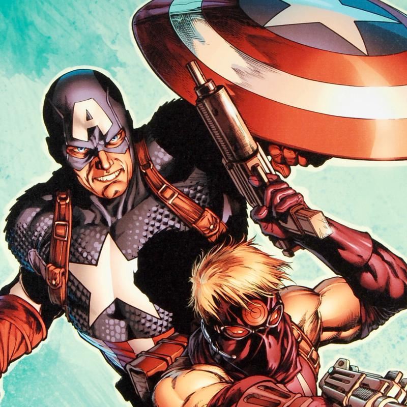 A piece of comic book history, this limited edition print, drawn by Carlos Pacheco, depicts Captain America, and Hawkeye. Pacheco first got attention in the United States for his work as penciller on Dark Guard, a Marvel UK title. This led to him being offered work by American comic editors leading to Marvel Comics' 1994 Bishop. Pacheco's art had become a fan favorite, with his work regularly getting coverage in magazines such as Wizard. In early 1997 Marvel acknowledged this by assigning Pacheco to one of its flagship titles, X-Men. In 2009, Pacheco signed an exclusive contract with Marvel. "Ultimate Avengers #2" is a limited edition numbered giclee on stretched canvas by Carlos Pacheco presented by Marvel Comics. This piece comes gallery wrapped and ready to hang. Includes Certificate of Authenticity! Measures approx. 18" x 27" (image); 1.5" (depth).