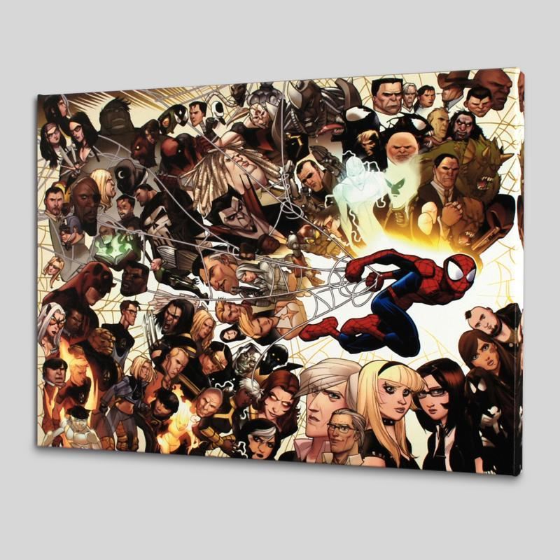 A piece of comic book history, this limited edition print, drawn by David Lafuente, depicts the classic character Spider-Man. David Lafuente has drawn cover art for such franchises as X-Men and Spider-Man. "Ultimate Spider-Man #150" is a limited edition giclee on canvas by David Lafuente presented by Marvel Comics! This piece comes gallery wrapped and ready to hang. Includes Certificate of Authenticity! Measures approx. 24" x 18" (image).