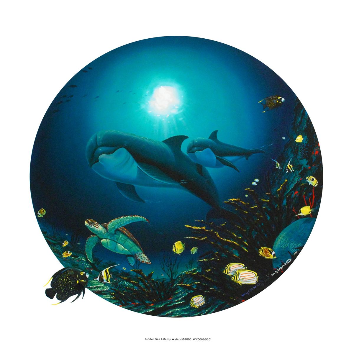 Wyland's boundless love of nature is clearly conveyed in each of his works with exacting detail. "Undersea Life" is a limited edition giclee on canvas, numbered and hand signed by Wyland! Measures approx. 24" x 24" (image).