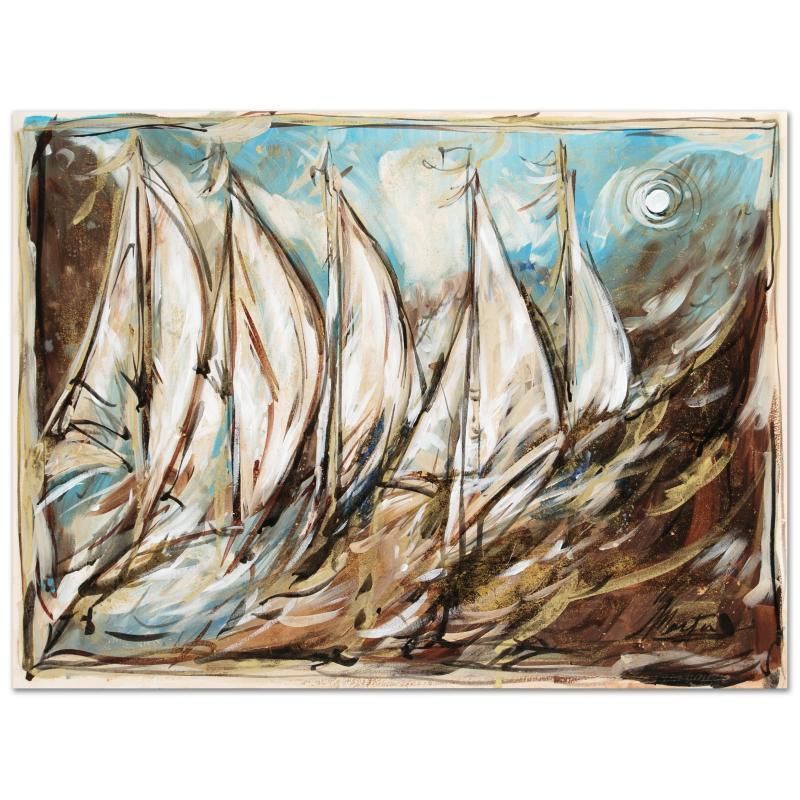 This piece is an untitled original mixed media painting on paper, hand signed and thumb printed by Marta Wiley. Measures approx. 24" x 18" (no border).