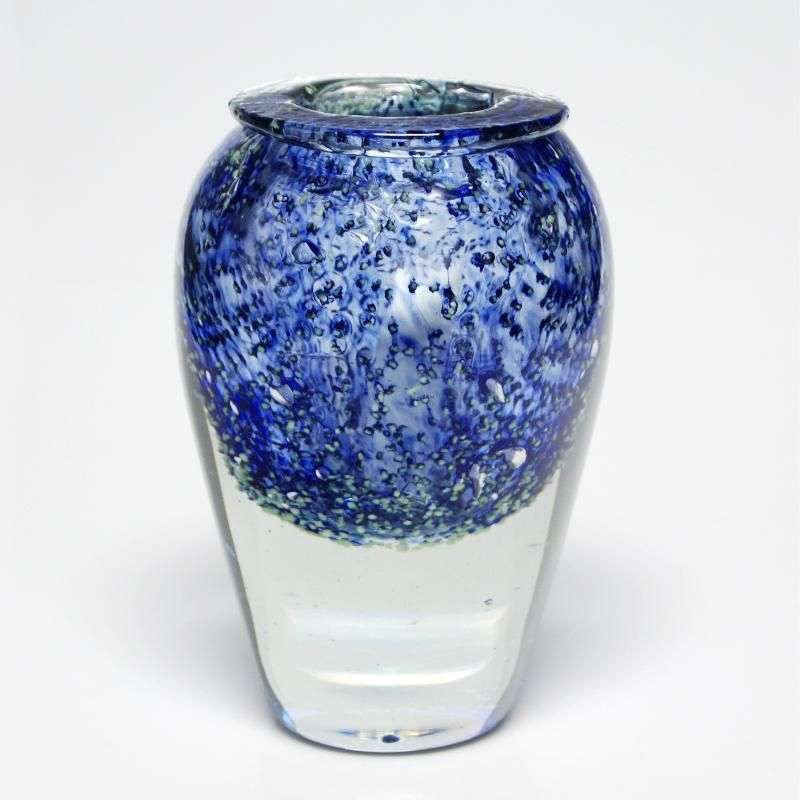This piece is an imported original hand-blown glow-in-the-dark glass vase sculpture by Jean Claude Novaro, Hand Signed by the Artist! Measures approx. 4.5" (diameter) x 7" (height), 5 lbs. (weight).