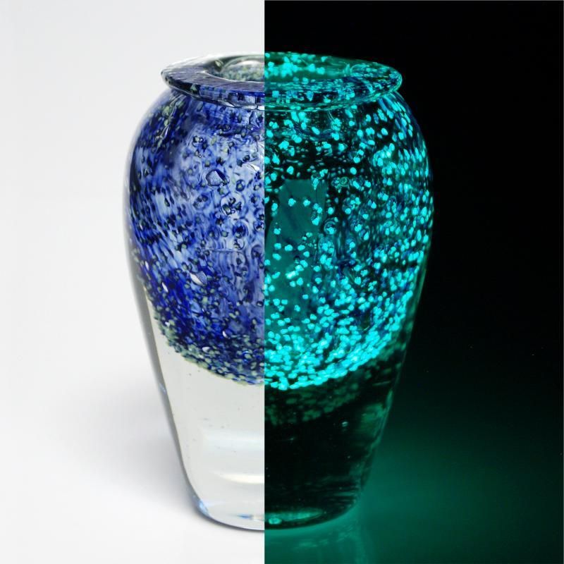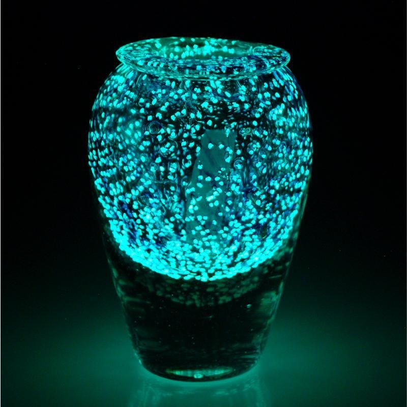 This piece is an imported original hand-blown glow-in-the-dark glass vase sculpture by Jean Claude Novaro, Hand Signed by the Artist! Measures approx. 4.5" (diameter) x 7" (height), 5 lbs. (weight).