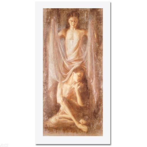 With a style that is reminiscent of the frescoes of Michelangelo and Caravaggio, Tomasz Rut creates breathtaking works of art that capture the beauty of the human form. "Veil Of Truth" is a limited edition giclee on canvas, numbered and hand signed by Rut. Includes Certificate of Authenticity! Measure approx. 17" x 36" (image).