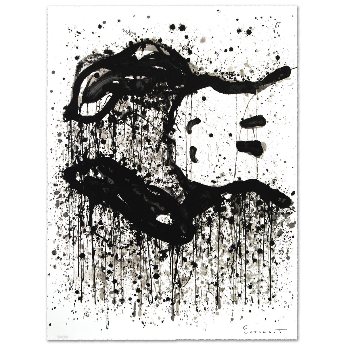 Master Artist Tom Everhart is the protege of famed "Peanuts" creator, Charles M. Schulz (1922â€"2000). As the only artist in the world granted the rights to draw the "Peanuts" characters in his own work, Everhart creates vibrant, extremely collectible rainbow masterpieces featuring Snoopy, Woodstock and the gang. "Watchdog 9 O'Clock" is a limited edition hand pulled original lithograph on museum quality deckle-edge paper, numbered and hand signed by Everhart! Measures approx. 22.5" x 30" (image only/no border). This artwork was created on one of two rare antique Marinoni Voirin lithograph presses that date back to the 1800's, and are reputed to come from the Paris print shop used by Henri Toulouse-Lautrec. There are only 7 of these magnificent beasts left in the world: the smaller one (with a print bed size of 25" x 35"), weighs 9 tons, and the larger one weighs in at 11 tons (print bed size 31" x 47"). The significance of this is that the lithographs produced by this method are of the finest quality, using techniques that are so labor and time intensive that very few master printers know how to operate and care for these presses today. Each lithograph is created with hand-mixed colors applied one at a time - a highly trained and synchronized team must hand feed each museum-quality sheet of paper through the press numerous times in order to set the colors and impressions, while the Chromist - a trained color specialist - adjusts each color by look and feel to match the original artwork, as if mixing a potion. The result is an image with maximum pigment saturation, formed through rich layers of color that imbue the artwork with a permanency of brilliance - proven over centuries to last. In contrast, today's printers use a method more akin to a dot matrix style application, with the colors all premixed and sprayed onto a sheet in a uniform layer, resulting in a much less saturated image that is susceptible to fading and imperfect color reproduction. This is one of the final Tom Everhart editions to be printed using this very special technique.