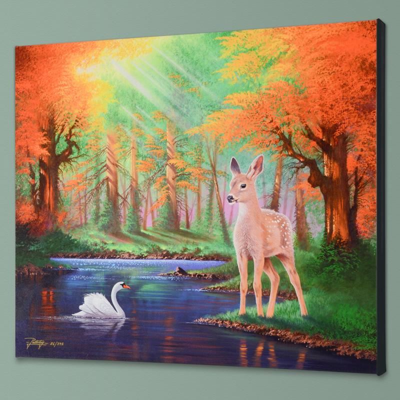 With an impeccable talent for capturing light and shadow, Jon Rattenbury creates luminous landscapes that are replete with bright colors and intricate details. "When We First Met" is a limited edition giclee on canvas, numbered and hand signed by the artist, with Certificate of Authenticity! This piece is gallery wrapped and ready to hang. Measures approx. 24" x 20" (image).
