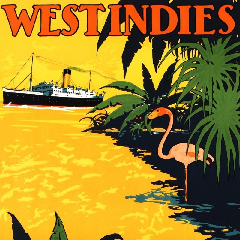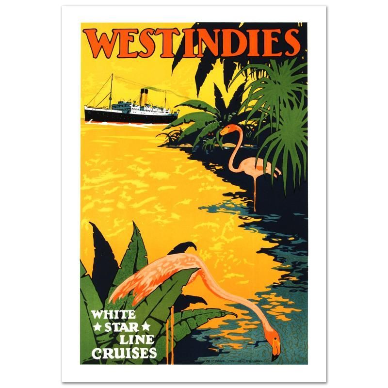 "White Star Lines/West Indies" is a hand pulled lithograph on paper by the RE Society. Measures approx. 15" x 22" (with border), 13" x 20" (image).