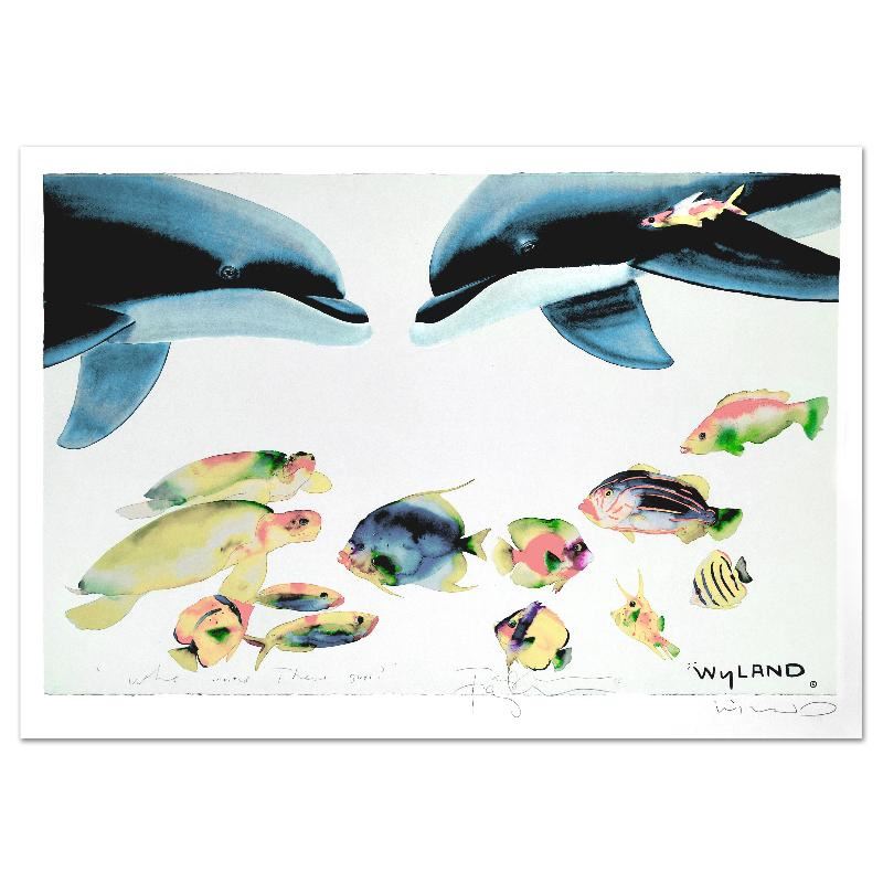 Journey into a world of lifelike imagery and captivating color with this breathtaking collaboration between artists Tracy Taylor and Wyland! "Who Invited These Guys?" is a limited edition lithograph on paper, numbered and hand signed by both Wyland and Tracy Taylor! Measures approx. 33" x 25" (with border), 31" x 21" (image).
