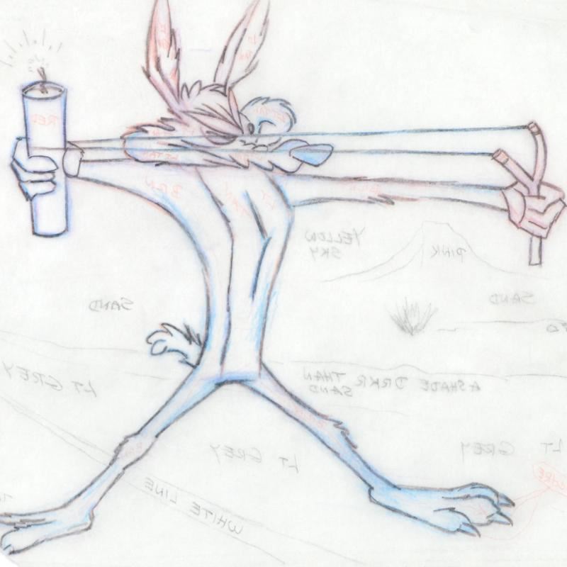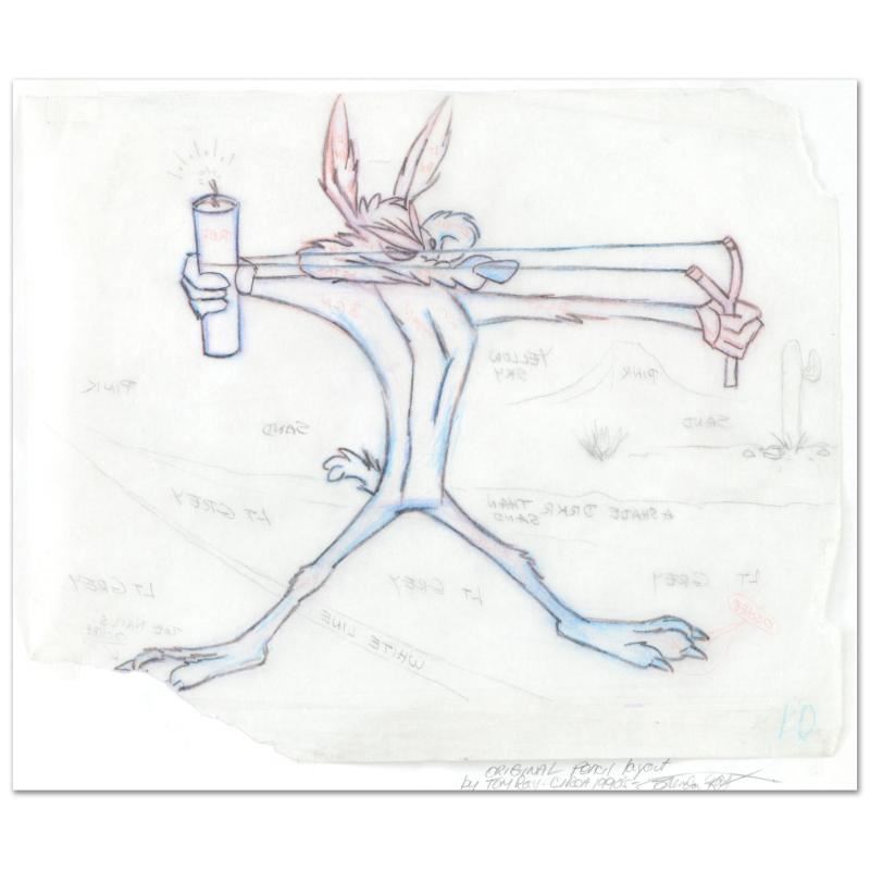 "Wile E. Coyote" is an original pencil layout on paper circa 1990's by the renowned animator and cartoon director, Tom Ray (1919-2010)! This piece is hand signed by his widow, Brenda Ray. Measures approx. 12.5" x 10.5" (no border).