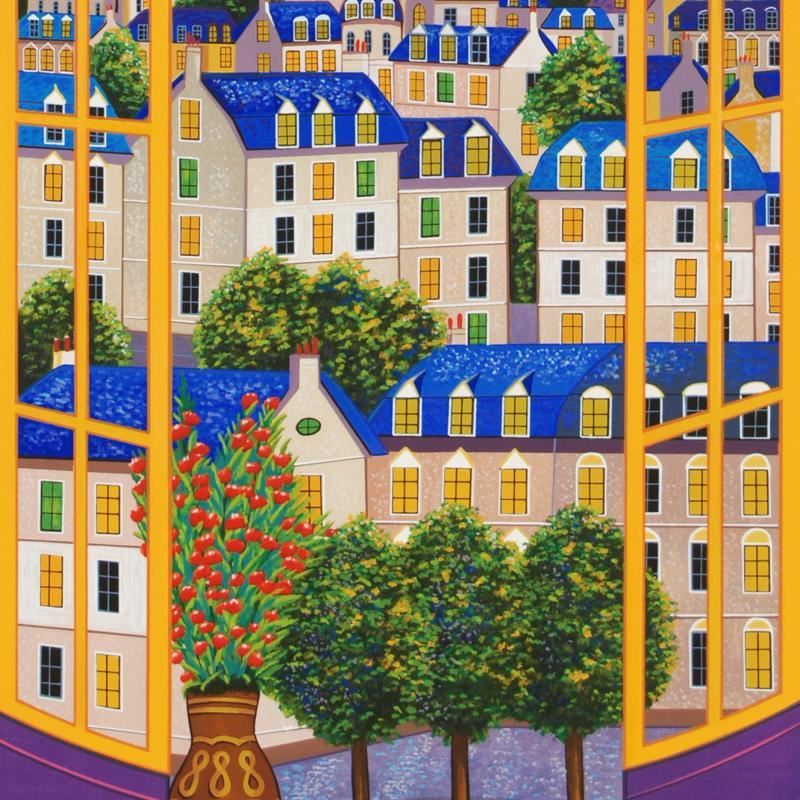 "Windows On Paris" is a limited edition serigraph on paper, numbered and hand signed by Fanch Ledan. Includes Certificate of Authenticity! Measures approx. 15.5" x 36.5" (with border), 13" x 34" (image).