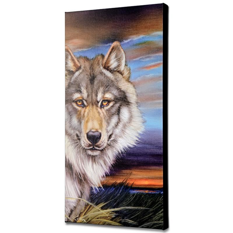 "Wolf" is a limited edition giclee on canvas by Martin Katon, numbered and hand signed by the artist! This piece is gallery wrapped and ready to hang! Measures approx. 12" x 24" (image).