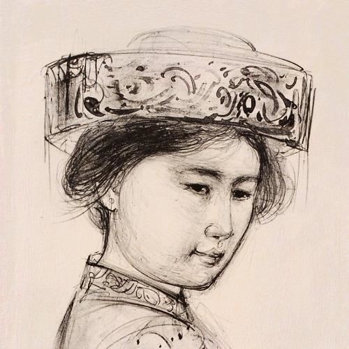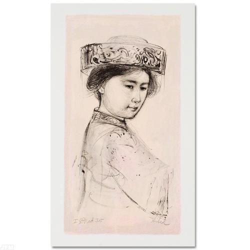 "Yasmin" is a limited edition lithograph on paper, numbered and hand signed by Edna Hibel (1917-2014). Measures approx. 13" x 20" (border), 9" x 16.5" (image).